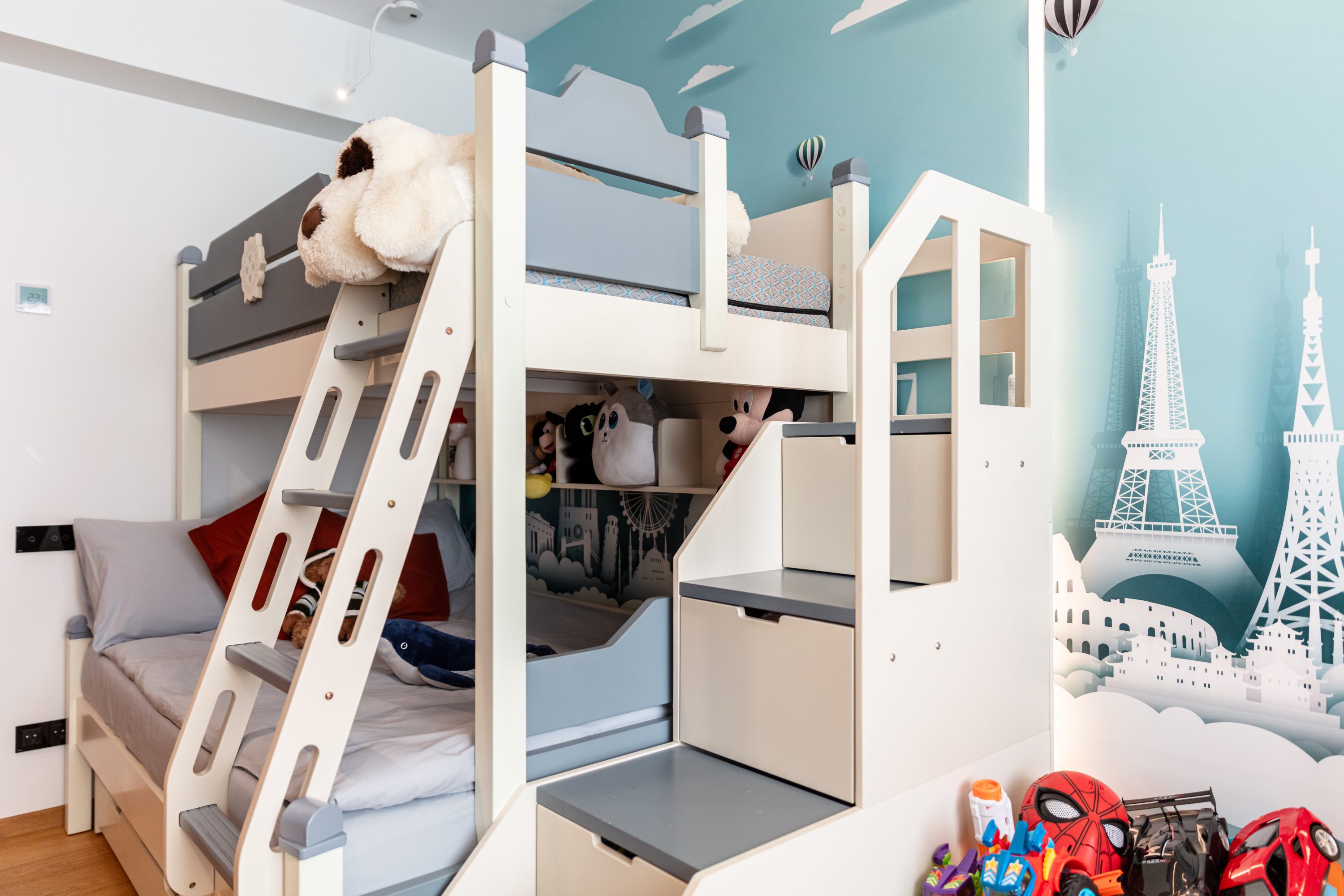 Descriere proiect: Recompartimentare si reamenajare completa pentru un dormitor in plus, o functionalitate mai buna si un look modern.